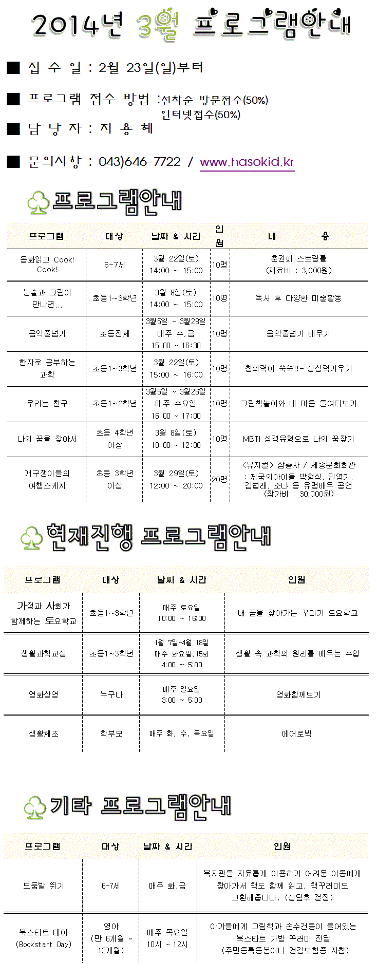 2014³â 3¿ù ÇÁ·Î±×·¥ ¾È³»