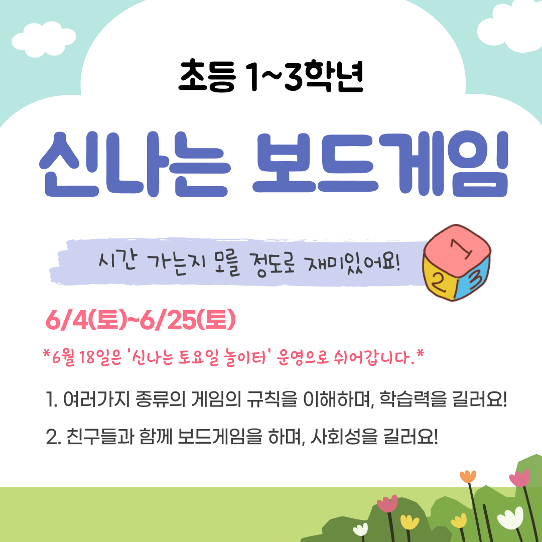 **6¿ù 18ÀÏ(Åä) ¿ÀÈÄ 1½ÃºÎÅÍ 3½Ã±îÁö º¹Áö°ü ¾Õ¸¶´ç¿¡¼ º¸µå ¼±»ý´Ôµé°ú ÇÔ²² º¸µå°ÔÀÓÀ» Áñ±æ ¼ö ÀÖ¾î¿ä~!(Á¢¼ö¾øÀÌ Âü¿© °¡´É)